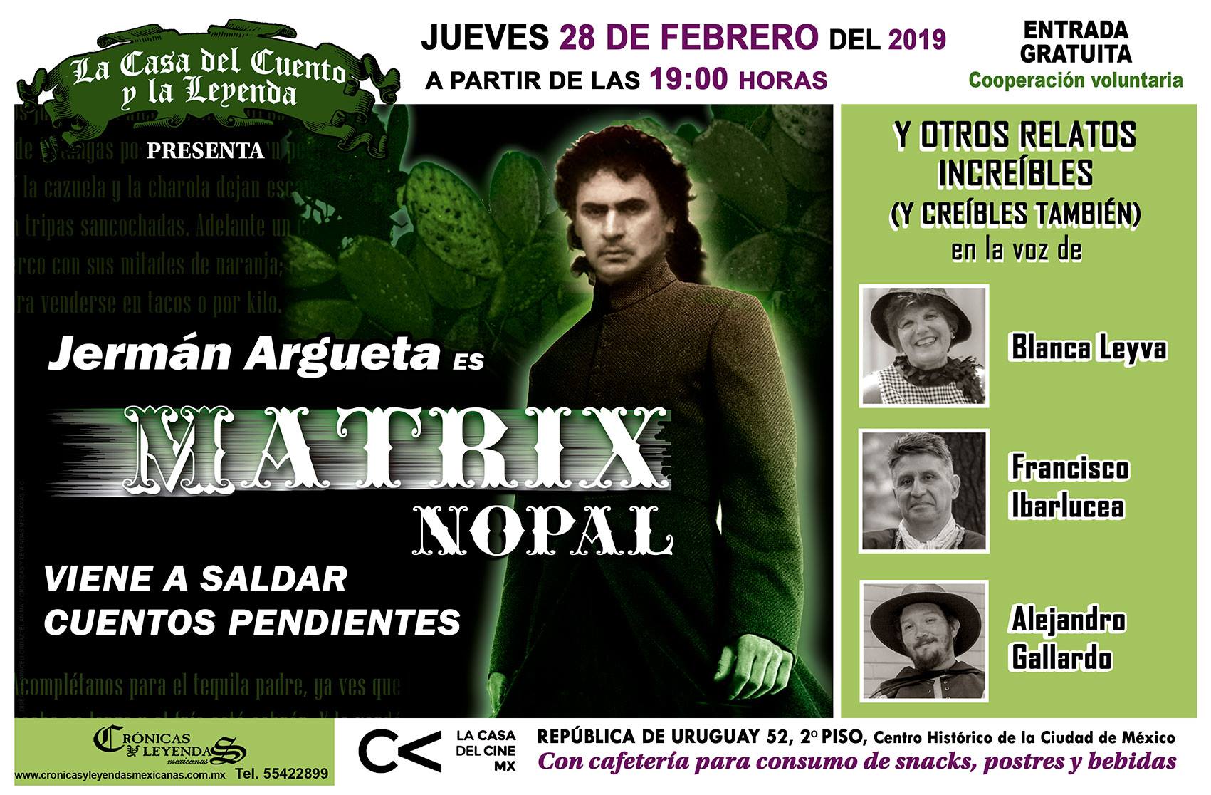 cooperación voluntaria. Consulta nuestra cartelera y aparta tu lugar. Estamos en el Centro Histórico de la Ciudad de México.